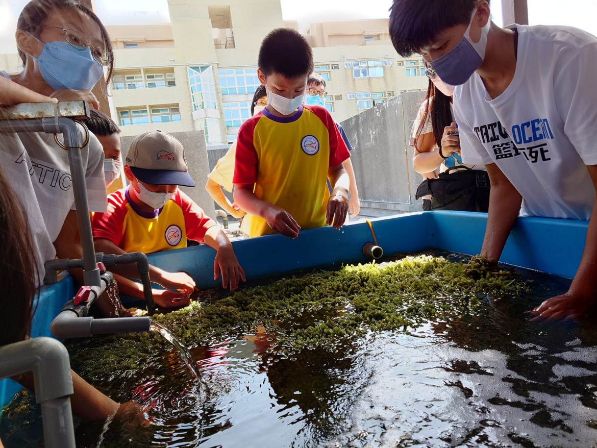 重點在參訪海大藻類研究中心。讓孩子們幫忙撿查藻類;認識養殖的跟野生的不同;把養殖缸刷乾凈;自己採了海葡萄,洗凈川燙之後自己吃掉…….啊!每個孩子都排了10次以上來吃這個珍貴的綠色魚子醬啊!老師家長們也玩得好快樂!