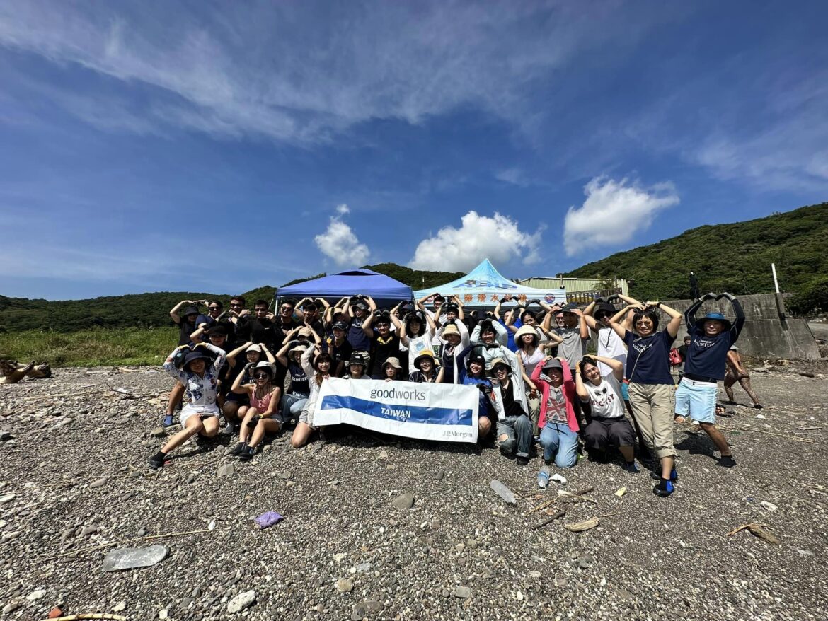 把各地飄來的海廢彎腰撿起